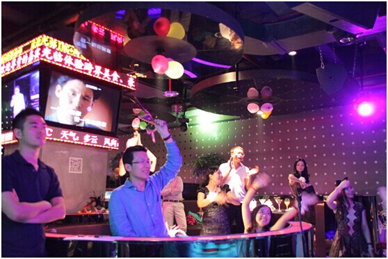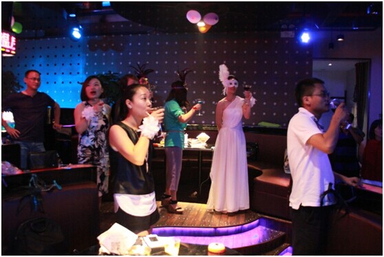 (上圖為杭州品蔻服飾有限公司總經(jīng)理余銀平傾情演唱《夜夜夜夜》)