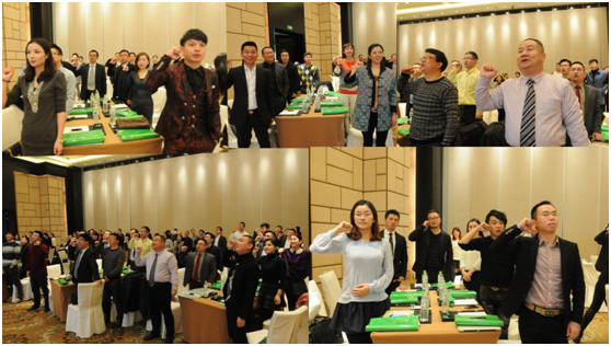 接下來是本次盛典最莊嚴的一刻,共軍們?nèi)w起立,握拳右舉、用心宣誓著我們共創(chuàng)會自己的宣言:……積極向上、勤奮好學,我們樂于分享,渴望成長……
