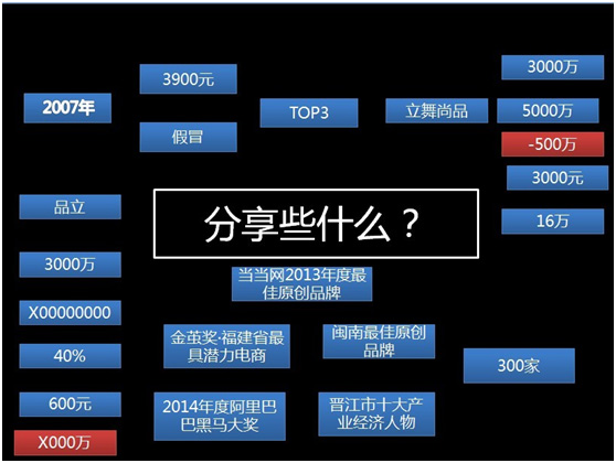 2014年度阿里巴巴黑馬獎得主、晉江十大產(chǎn)業(yè)經(jīng)濟人物,最佳原創(chuàng)男裝潮品牌【品立】創(chuàng)始人,一個比女人還漂亮的男人,在分享他從傻B到騷B的磐涅過程( 創(chuàng)業(yè)7年,他用思維改變了商業(yè)模式,同時也被商業(yè)所改變。從通過線上平臺賣斷鞋賺取辛苦費,到自創(chuàng)男裝品牌,依靠打造爆款成為知名淘品牌;從慘烈競爭虧損嚴重,到走調(diào)性,適時推出中高端品牌,發(fā)起新的電商突圍,并在短短半年取得了突出的成績。)!每個人成功的背后一定有他的故事,至少他的堅韌與堅持、頑強與執(zhí)著,敢想敢要敢突破就是他最好的特質(zhì)。
