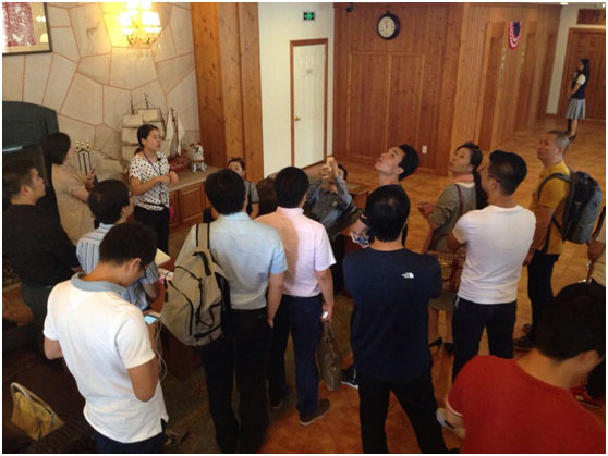 波特蘭小街(德勝堂、加州森林、咖啡屋、樣板房、看云居等)是一處高檔、特別的花園別墅小區(qū),由168棟全木結(jié)構(gòu)美制洋樓別墅和一座3000余平方米的會(huì)所組成。我們先來(lái)到坐落于波特蘭小街的德勝堂內(nèi),吳老師對(duì)共創(chuàng)會(huì)一行人的來(lái)訪表示歡迎,并用幾分鐘時(shí)間簡(jiǎn)單介紹德勝的概況與發(fā)展。