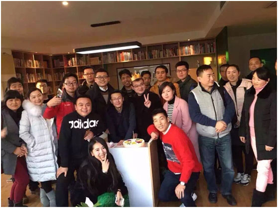 (上圖是會員們?yōu)楹贾葜揆Y電子商務(wù)有限公司總經(jīng)理孫高峰慶祝生日)