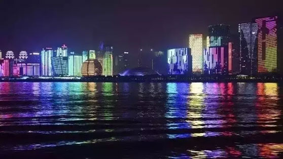 錢塘江兩岸夜景亮燈壯觀絢爛,