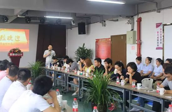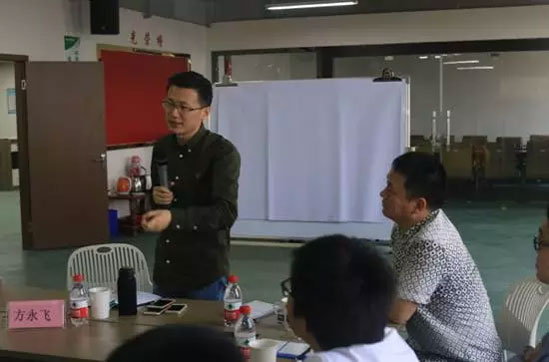 (上圖中,義烏市特諾百貨貿(mào)易有限公司總經(jīng)理吳高斌,從企業(yè)運(yùn)營(yíng)、績(jī)效管理等方面為到場(chǎng)共軍做經(jīng)驗(yàn)分享和互動(dòng))