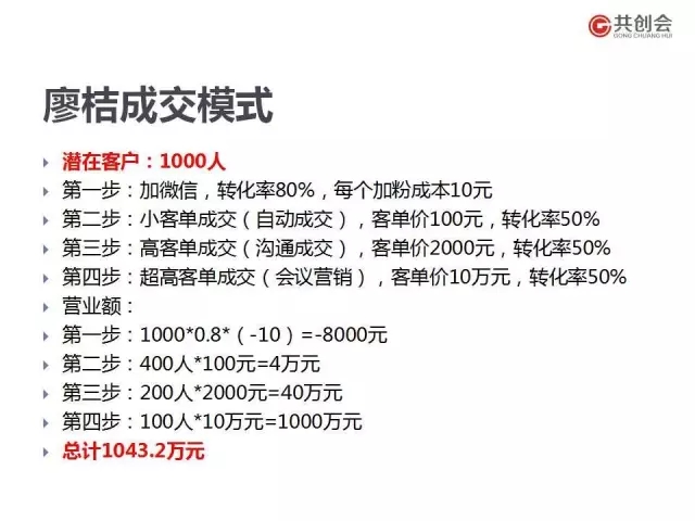 隨后,廖總為我們分享了廖桔成交模式,可見其轉(zhuǎn)化率非常高: