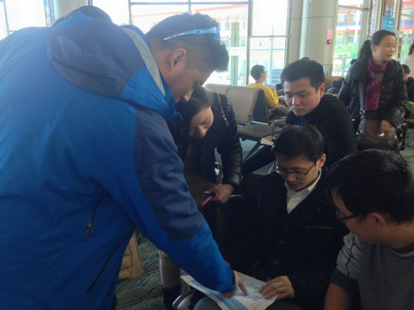 (上圖為在機(jī)場(chǎng)候機(jī)時(shí)會(huì)員還不忘與方永飛老師一起探討企業(yè)管理落地問(wèn)題,正在討論的是義烏特諾百貨有限公司的13年總結(jié)及14年年度計(jì)劃的制定)