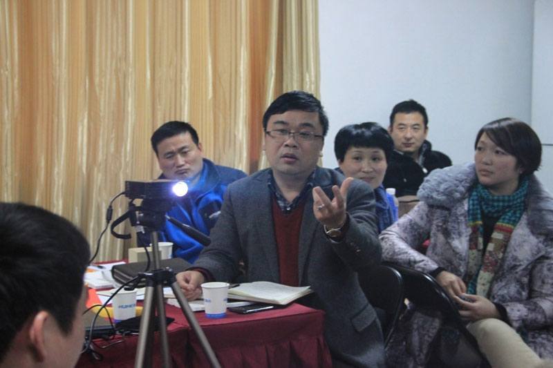(上圖為分小組討論中,大家把各自企業(yè)的問(wèn)題集中,然后發(fā)表,讓另一組的伙伴來(lái)做解答,右側(cè)是來(lái)自桐鄉(xiāng)尚閣紡織品有限公司總經(jīng)理蔣總正在耐心回答伙伴們提出的問(wèn)題,大有一種一語(yǔ)道破天機(jī)的感覺(jué)。)