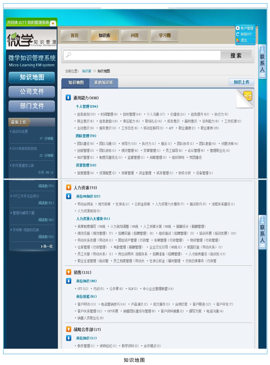 GTT企業(yè)知識(shí)庫體系快速分析企業(yè)知識(shí)結(jié)構(gòu)、分類存儲(chǔ)知識(shí)數(shù)據(jù)、共享知識(shí)應(yīng)用、提升企業(yè)管理效率,增值企業(yè)知識(shí)資產(chǎn)。通過知識(shí)大廳、知識(shí)問答、分享知識(shí)等功能,積累并共享員工在工作中的經(jīng)驗(yàn)、知識(shí)、技能、為組織發(fā)展提供智力支持;通過企業(yè)團(tuán)結(jié)一致,集思廣益,頭腦風(fēng)暴解決問題。