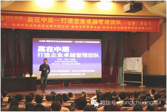 5月17日早9點(diǎn),共創(chuàng)會(huì)管理人員職業(yè)化塑造之《贏在中層——打造企業(yè)卓越管理團(tuán)隊(duì)》在浙江嘉海大酒店十樓會(huì)議廳如期舉行,本次課程有幸邀請(qǐng)到共創(chuàng)會(huì)創(chuàng)始人、時(shí)代光華教育發(fā)展有限公司總裁、步步為贏教育科技集團(tuán)董事長(zhǎng)----方永飛老師擔(dān)任主講教授,方老師表示,從現(xiàn)在中小企業(yè)的整體情況看,員工的職業(yè)化素養(yǎng)普遍偏低,難以規(guī)范,但要讓企業(yè)有一個(gè)規(guī)范健康的發(fā)展,首先要統(tǒng)一員工的思想,加強(qiáng)管理人員的職業(yè)化塑造,就此觀點(diǎn),方老師特地為共創(chuàng)會(huì)會(huì)員企業(yè)安排此次課程,旨在打造出一支支強(qiáng)有力的團(tuán)隊(duì),全面推動(dòng)會(huì)員企業(yè)管理升級(jí)。
