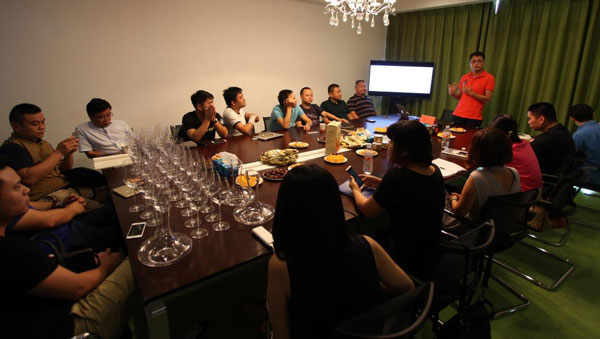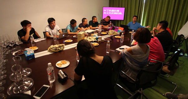 (會員們在品過45度冰濃郁的酒香中,集思廣益,暢所欲言,交流分享自己的建議)