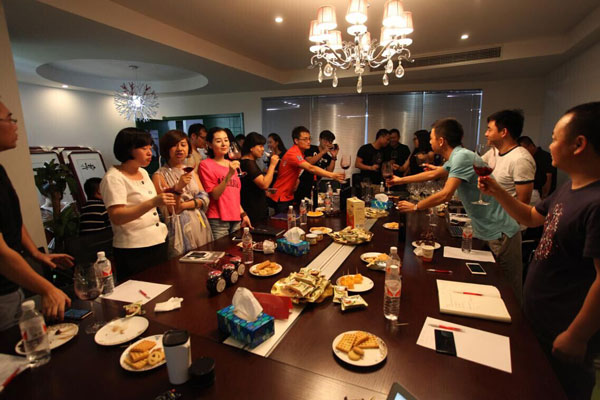 (上圖為朱一總經(jīng)理帶領(lǐng)會員們探究其45度冰的品牌魅力)