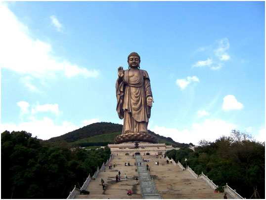 靈山大佛的建成彌補(bǔ)了中國(guó)五方佛少東方佛的缺憾。佛家認(rèn)為,東西南北中,各有一尊佛坐鎮(zhèn),歷史上中國(guó)只有四方佛:北方佛---云岡石窟大佛,西方佛------四川樂(lè)山大佛,南方佛----香港天壇大佛,中間佛-----洛陽(yáng)龍門石窟大佛,唯少一尊東方佛。94 年中國(guó)佛教會(huì)主席趙樸初提出修造東方靈山大佛,選址在無(wú)錫靈山。