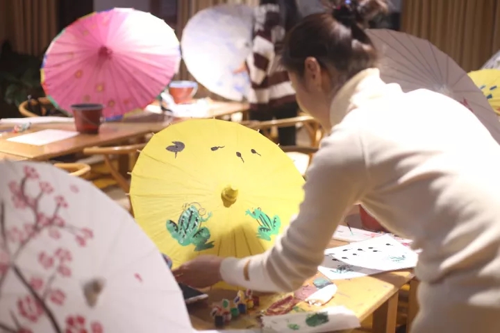 女企業(yè)家們和寶寶都用五顏六色的顏色裝點(diǎn)著一把把油紙傘,拿起畫筆,一展才藝,描繪精美的畫面,仿佛又同孩子一般回到了色彩斑斕的童年。